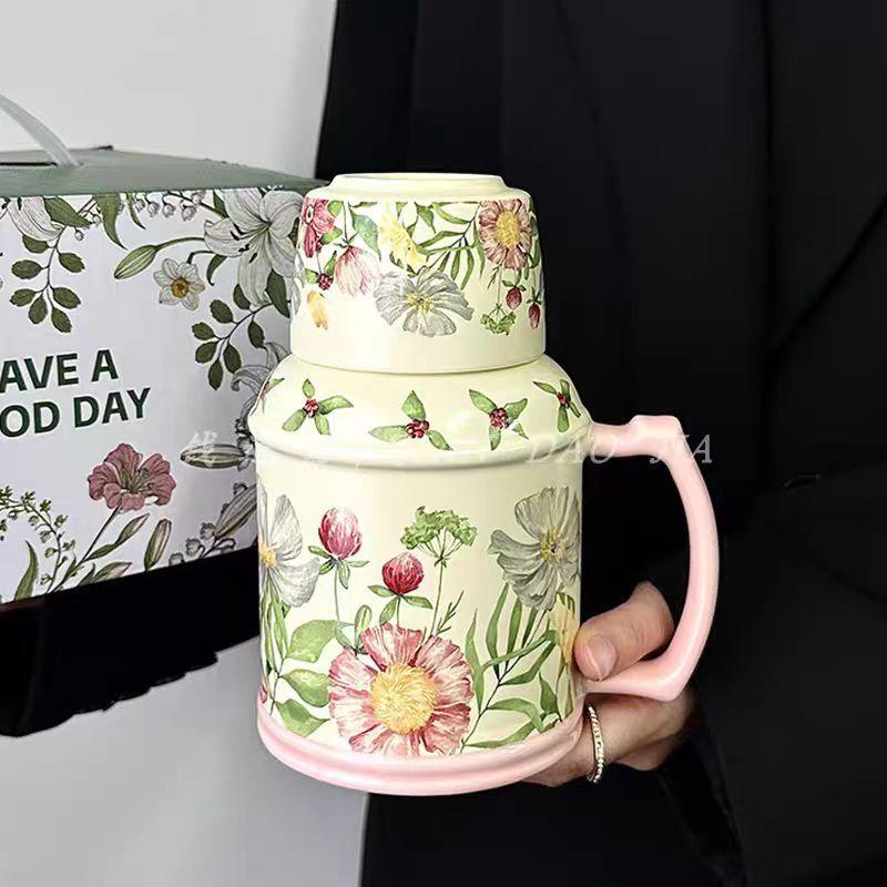 Retro Original Design Xiangyang Flower Blooming Kettle Cup Set, Afternoon Tea Ceramic Cup, High-End Sense, Large-Capacity Teacup With Lid