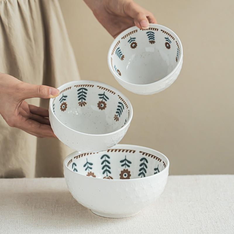 Minimalist Ceramic Round Bowl Embossed Flower Salad Bowl Restaurant Ramen Bowl Rice Bowl Large Soup Bowl Household Vegetable Bowl