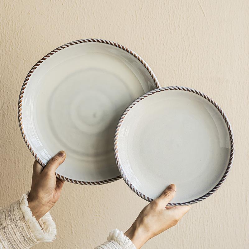 Plate Large Plate Simple Wind Plate Twist Edge Round Plate Household Vegetable Plate Dessert Plate Pasta Plate Tableware Size Plate