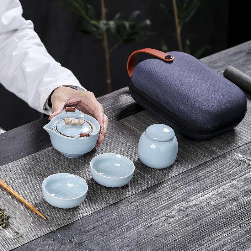 Ruyao Ge Kiln Portable Travel Tea Set Kuaike Cup One Pot Two Cups Brewing Teapot Tea Can Customization