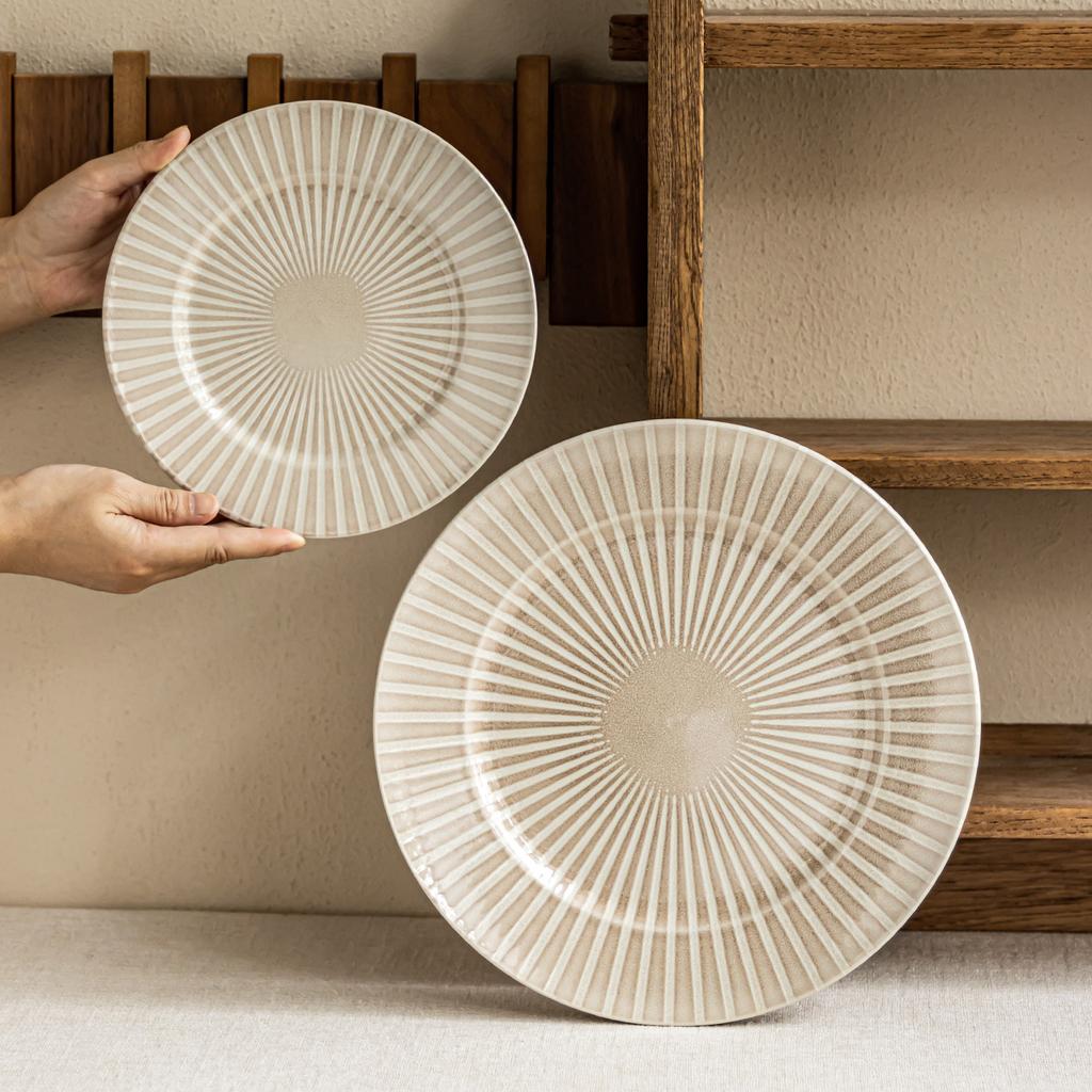 Special Striped Plate Ceramic Plate Household Vegetable Plate Salad Plate Creative Tableware Dim Sum Plate Round Plate Dinner Plate