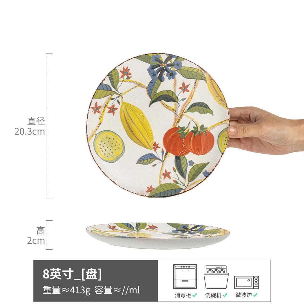 Pastoral Fruit Pattern Ceramic Plate Household High-Value Tableware Plate Salad Plate Round Plate Vegetable Plate