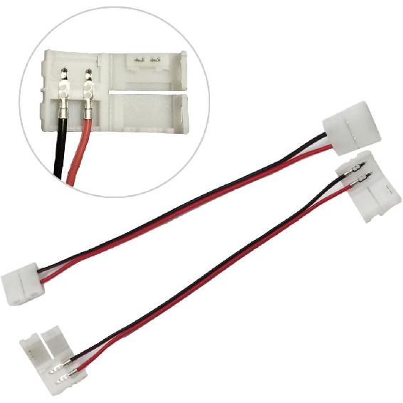 LightingWill 10pcs Pack Strip to Strip with Wire Solderless Snap Down 2Conductor LED Strip Connector for 10mm Wide 5050 5630 Single Color Flex LED