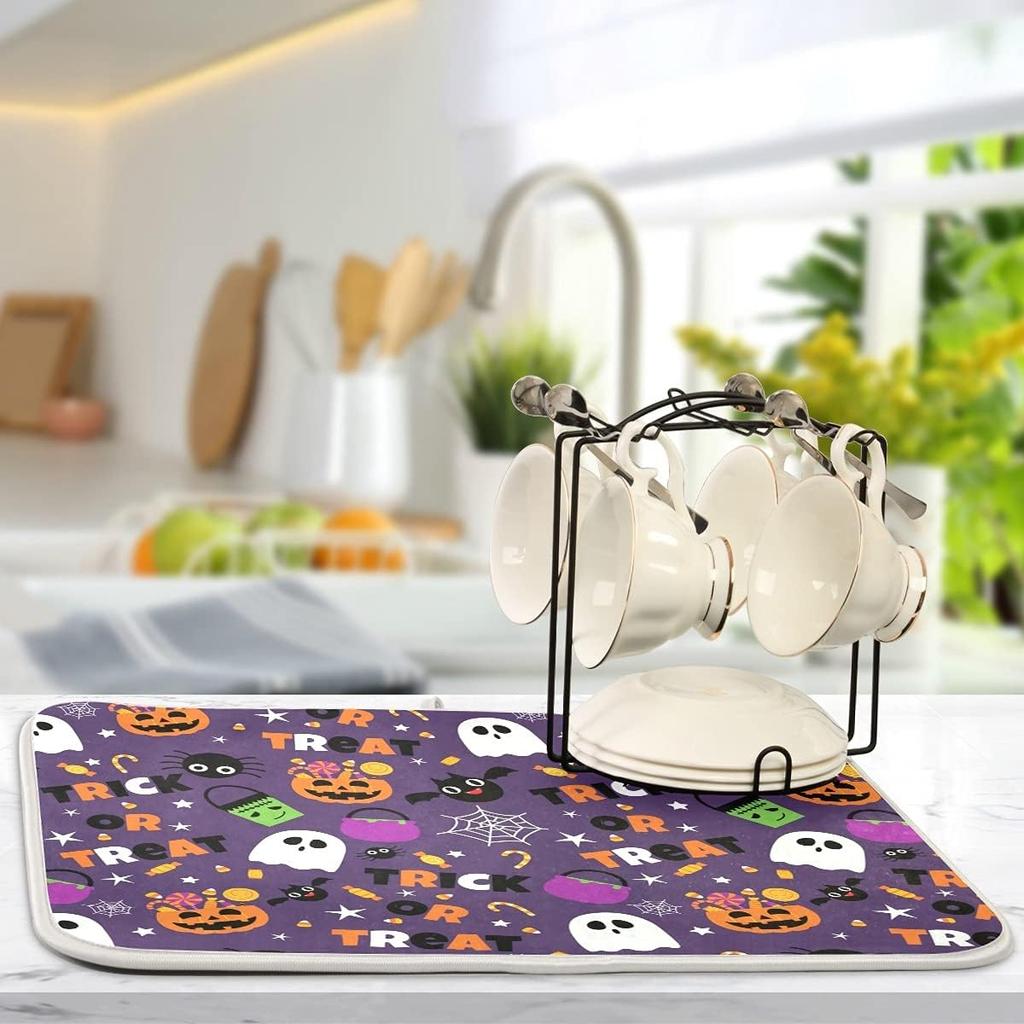 Happy Halloween Purple Pumpkin Fall Dish Drying Mat 16x18 for Kitchen Counter Trick or Treat Spooky Ghost Reversible Dishes Draining Mats Medium