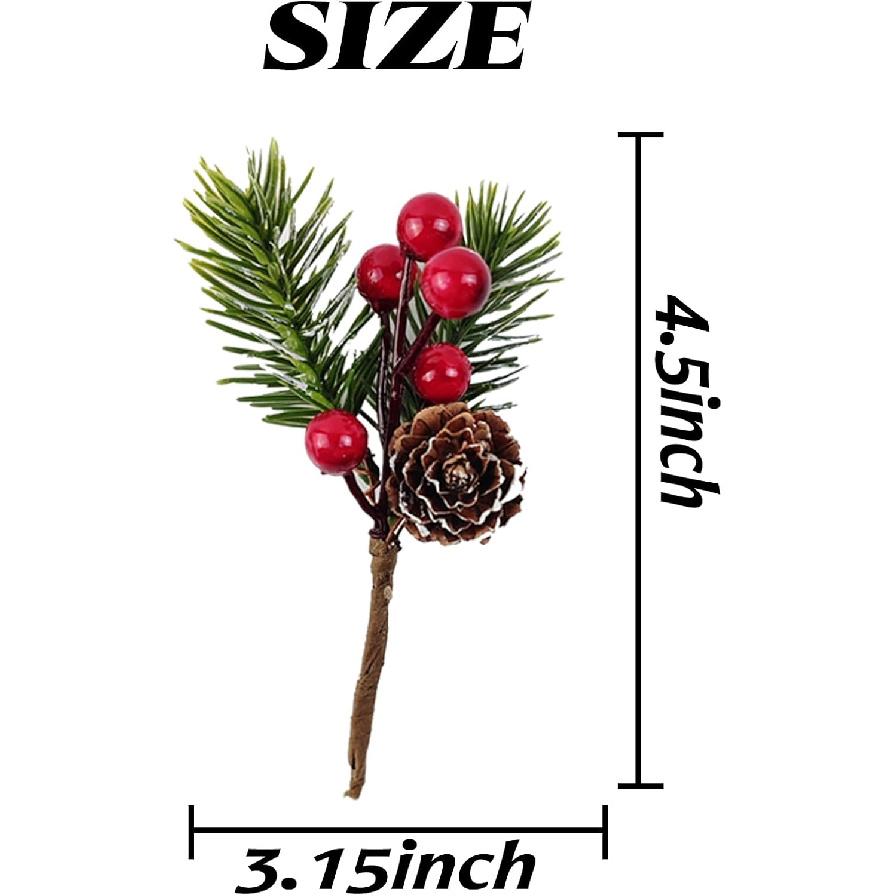 Package include: 20PCS artificial pine picks that consist of pine cones, red berries and pine needles, as an indispensable part of Christmas, the pine picks with natural pine cones, pine needles and berries can be decorated in Christmas trees, wreaths, DIY wreaths, stage props, party supplies and more.