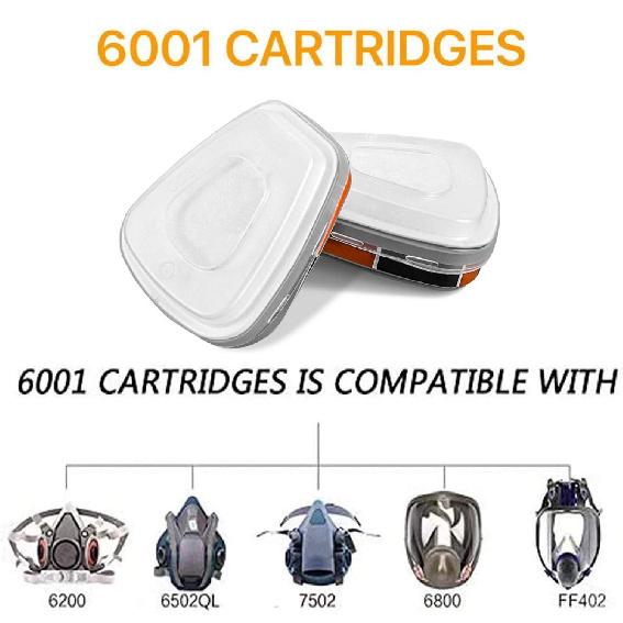 6001 Filter Cartridges Replacement for Gas Respirator, 2pcs Filter Cartridges + 2pcs Filter Covers+8pcs Filter Cottons, Apply to