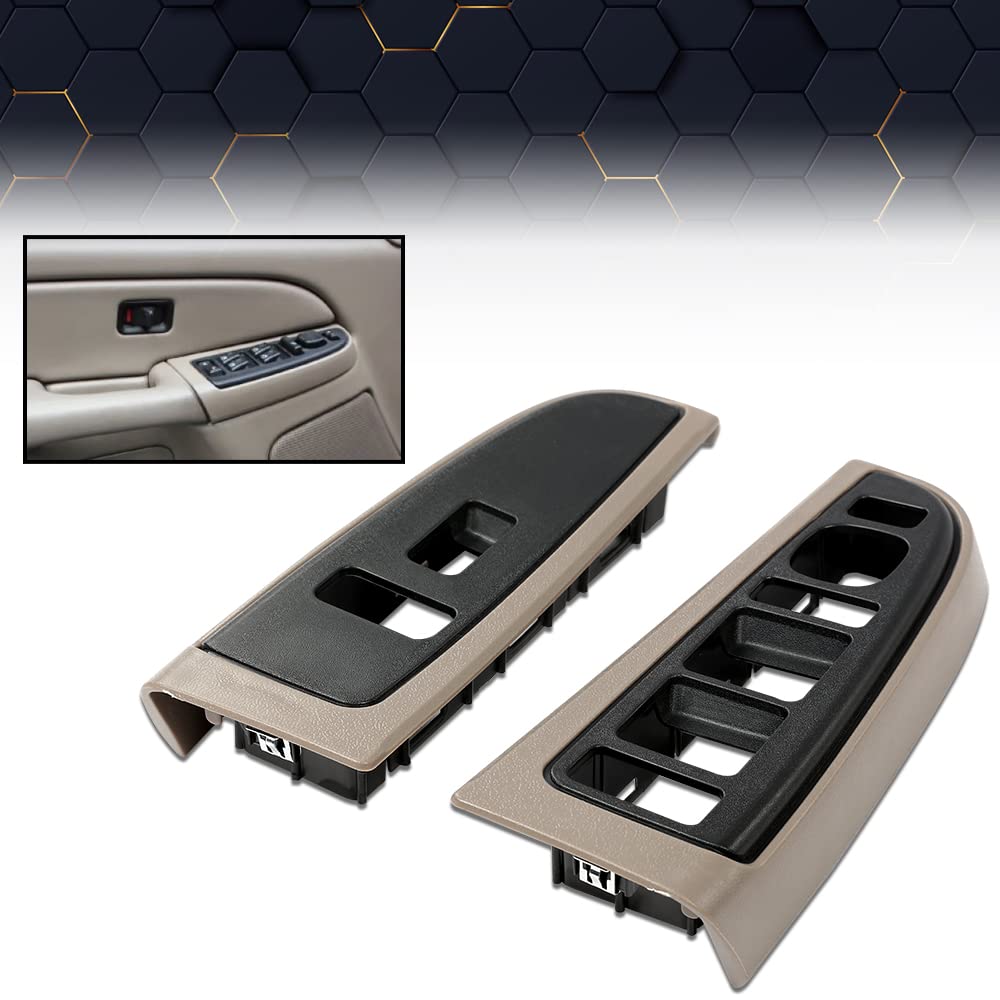 PIT66 Front Window Switch Trim Bezel Set Compatible with 2003-2007 Chevy Silverado/GMC Sierra 1500 2500 3500 (4 Door Models) Tan