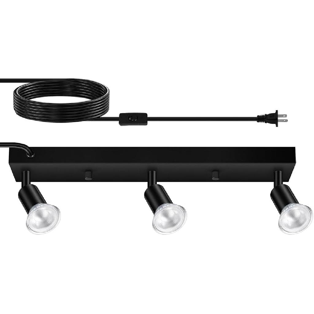 The 3 way ceiling track light for easy customizing your lighting needs, Overall size: (15.8'' L x 3.54'' W x 5.33'' H), 15 Foot Cord,You can adjust the light heads to different angles.The 4 track heads can be rotate 350Captive horizontally and 90Captive vertically. This light perfect addition to hallway, entry, porch, mudroom, stairwell, kitchen, closet, kids room, dining room, bedroom, living room, bathroom, bar, cafe, hotel and restaurant.