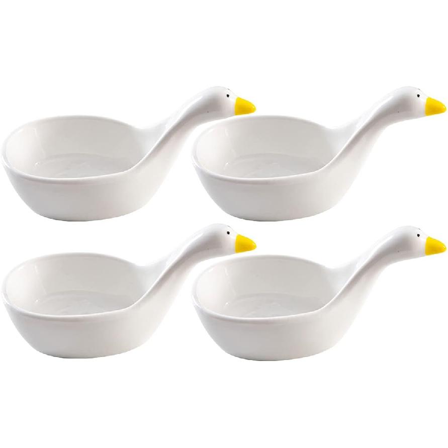 WAIT FLY 4pcs White Porcelain Sauce Dipping Bowl, 4-Inch Appetizer Plate Seasoning Dish, Stackable, Cute Duck Shape