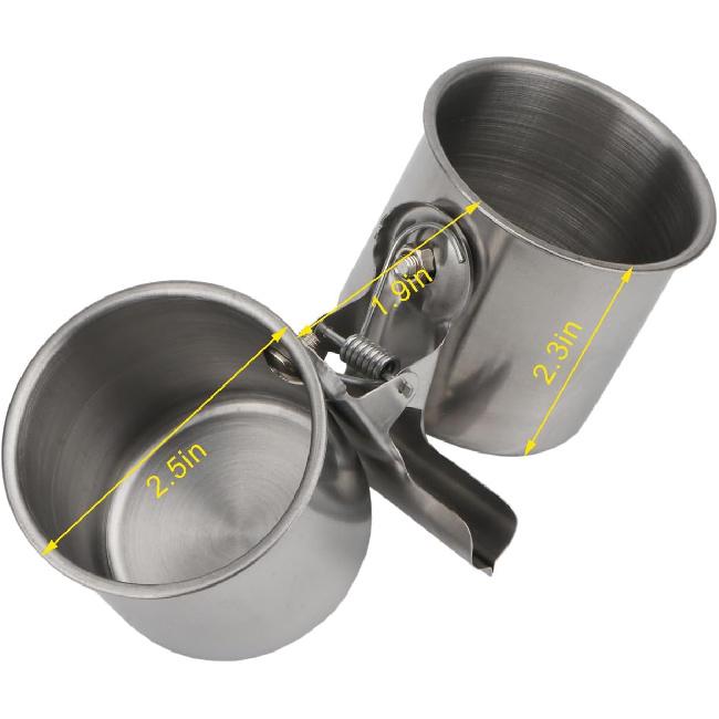 Hypeety Bird Parrot Feeding Double Cups Stainless Steel Food Water Bowls with Clip Bird Seed Feeder Cups Hanging Bowl Cage Stand Accessories