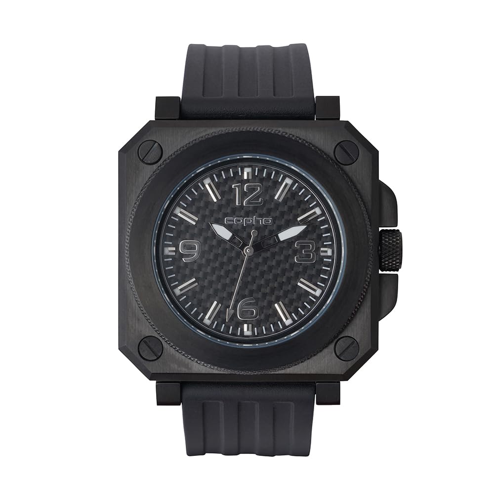 COPHA Replicant Men's Watch, Limited Edition, Square Analog Quartz Movement, Officially Imported, All Black with Black Rubber Strap