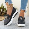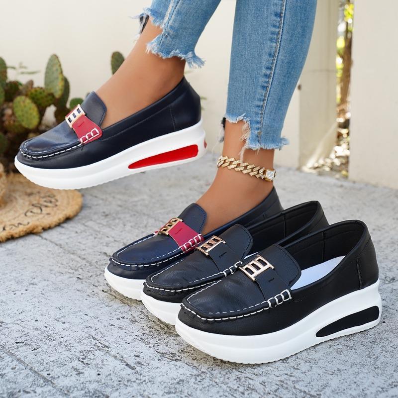 Damskie mokasyny na platformie o szerokiej tęgości - wsuwane casualowe płaskie buty z metalową klamrą na wiosnę, modne buty na grubej podeszwie