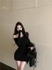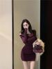 Lace Patchwork Off-Shoulder Long Sleeve Dress for Women Slim Fit Pure Temptation Bodycon Mini Skirt Purple Waist Cinched Tight Dress