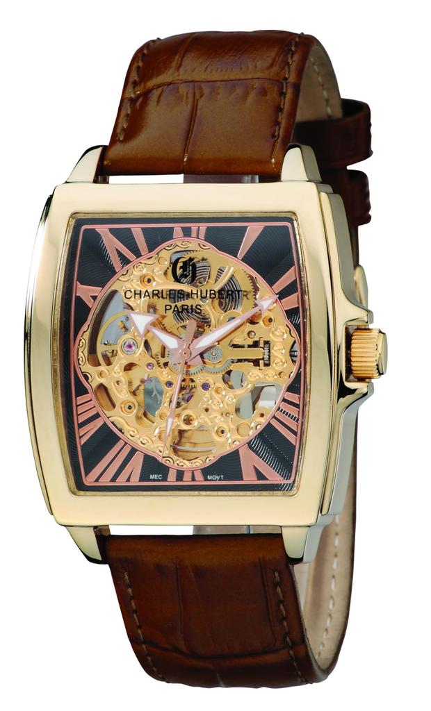 Charles Hubert 3888-A Men's Automatic Skeleton Watch, Brown
