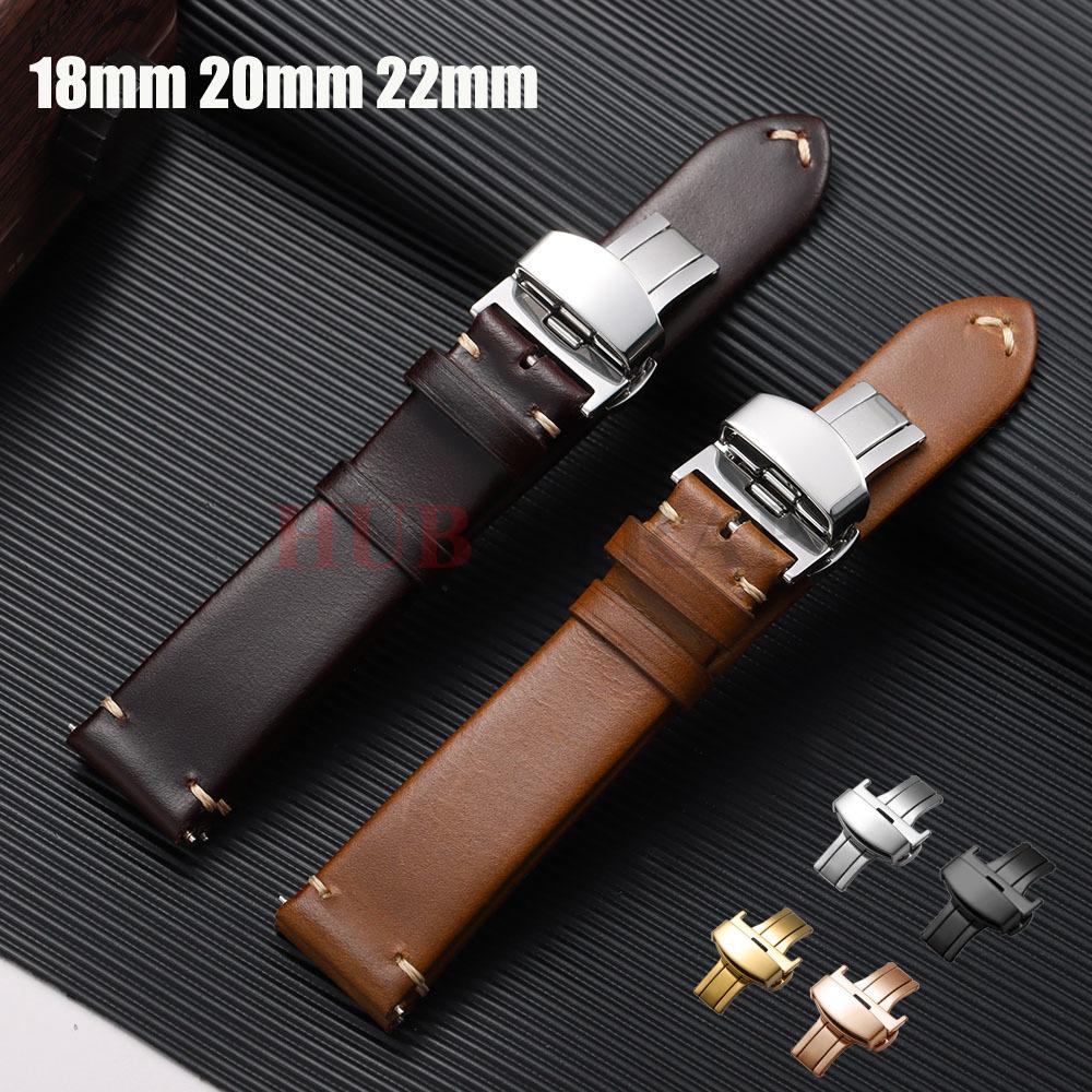 18 20 22mm Genuine Cowhide Strap Replace Band Rretro Stiching Soft Watchband Butterfly Buckle for Men Women Watch Accessories