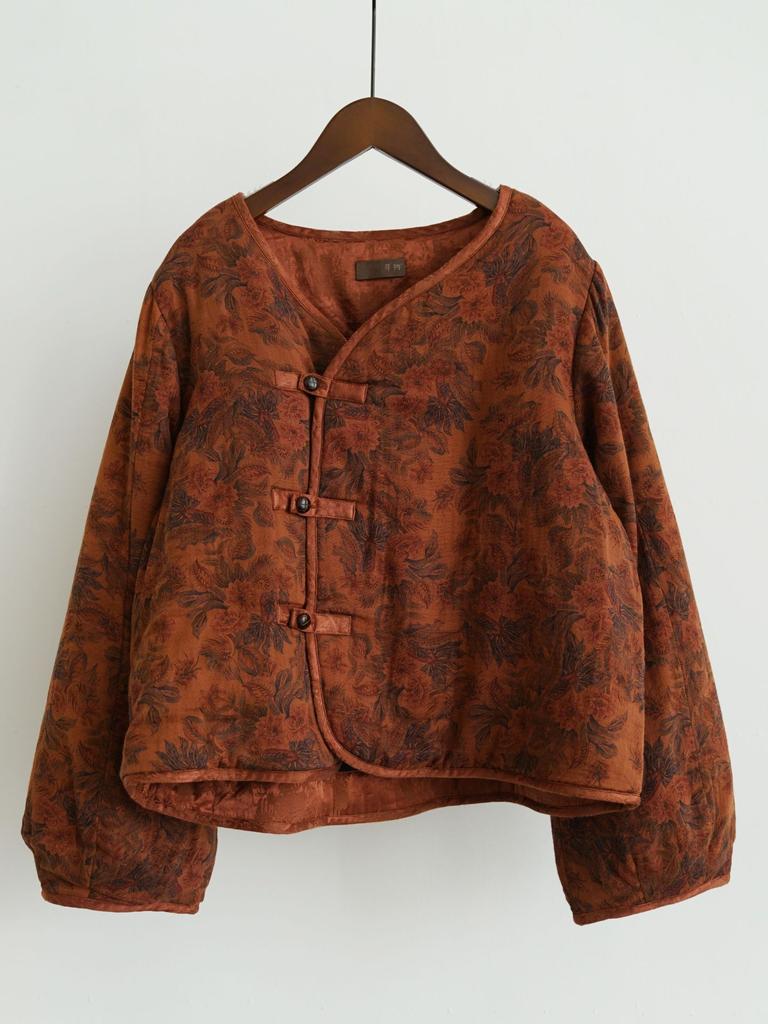 Johnature Women Vintage Winter Print Floral Thick Warm Coats Chinese Long Sleeve Button Female Coats