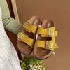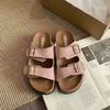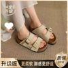 Retro thick-soled heightening one-word slippers women's summer 2025 new wear simple non-slip soft-soled Birkencool slippers