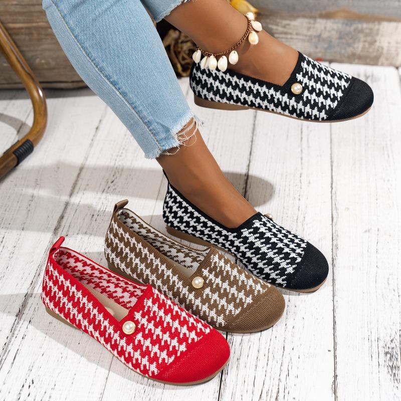 Women’s Round Toe Loafers Pearl Embellished Slip-On Breathable Casual Flats