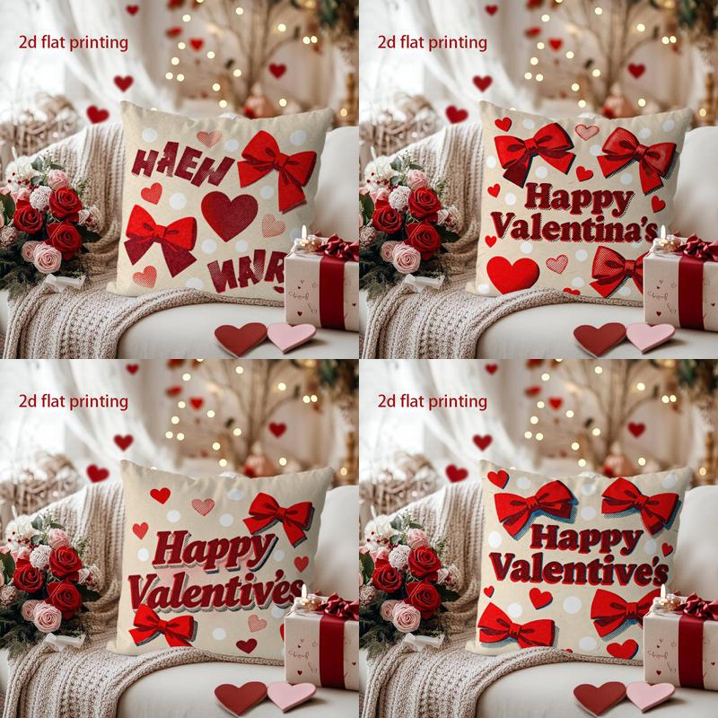 Heart & Bow Pillowcase for Valentine's Love Pattern Cushion Cover Suitable for Sofa Bedroom Car Pillow Cover