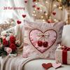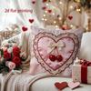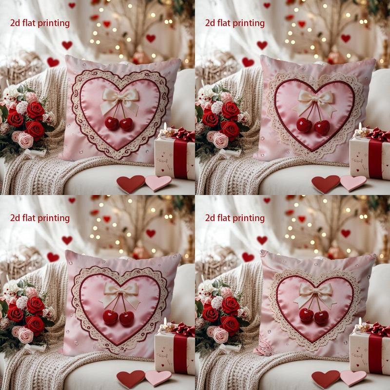 Heart-Shaped Pillowcase with Cherries and Bow Pattern Cushion Cover Suitable for Sofa Bedroom Car Pillow Cover