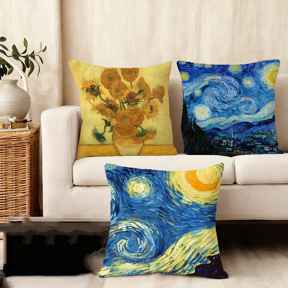 Poszewka na poduszkę Jedwabista Krótka Pluszowa Domowa Poszewka na Poduszkę Sofy - Niewidoczny Zamek Dekoracja Domu Dzieła Van Gogha