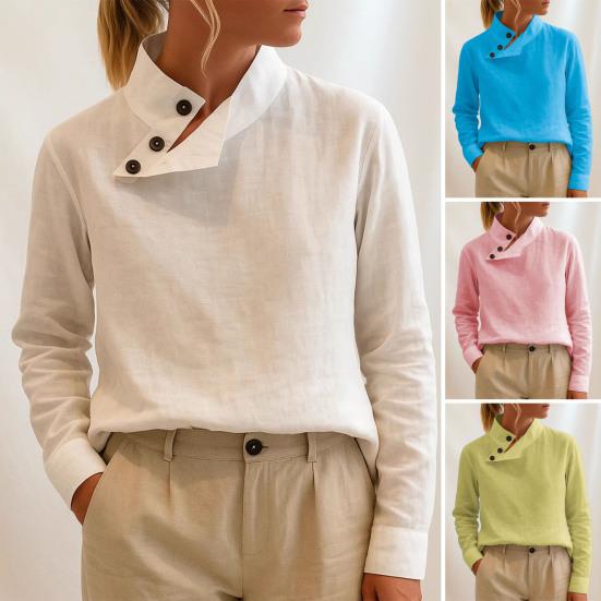 Ta damska bluzka jest wykonana z wysokiej jakości poliestru, oferując miękki, rozciągliwy i przyjazny dla skóry materiał dla całodziennego komfortu.. Dzięki kreatywnemu guzikowi z fazowanymi krawędziami przy dekolcie, dodaje stylowego i wyrafinowanego charakteru prostej sylwetce..