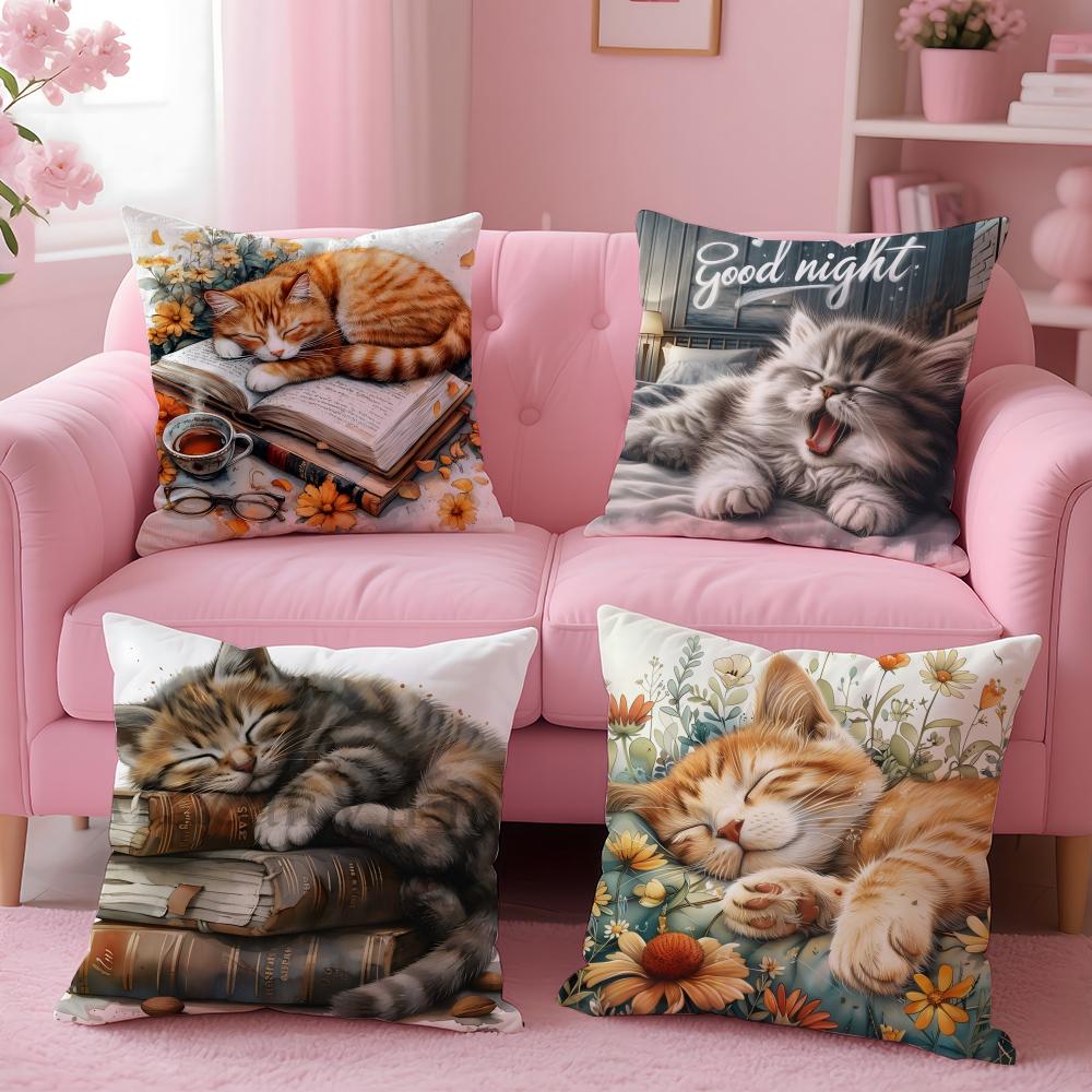 cute cat Cushion Cover Comfortable Reversible Pillow Cover Ideal for Car Sofa Bedroom & Beyond