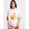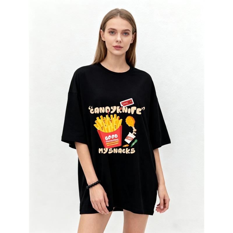 Koszulka Oversize Czarna Cukierkowy Nóż Frytki i Kurczak Nadruk Przekąski Casualowa Odzież Uliczna Dla Kobiet Moda Letnia
