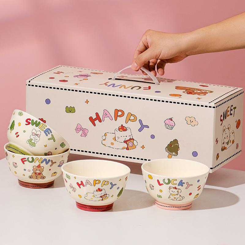 Cute Rice Bowl 2025 Tableware Household Bowl Gift Box Set Cartoon Dessert Bowl Souvenir Ceramic Rice Bowl