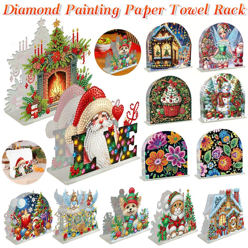 Double Sided Christmas Diamond Painting Napkin Holder DIY 5D Acrylic Diamond Painting Tabletop Paper Towel Holder Desk Ornaments