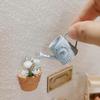 - 【Flower Rack Set】: 1 set of 1:12 scale miniature dollhouse decoration mini flower stand set, including plant stand, potted plants and watering can