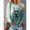 Modne damskie bluzy z długim rękawem, codzienne z okrągłym dekoltem, z uroczym kotem, topy z nadrukiem 3D, ubrania ze zwierzętami, pulowery, odzież dla dziewczynki Kawaii, topy