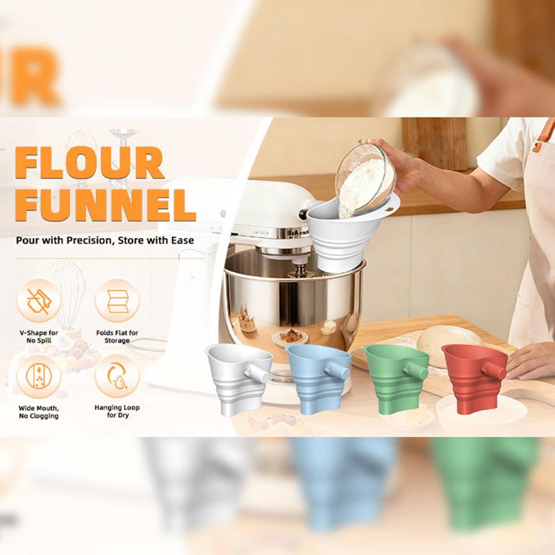 Foldable Flour Funnel Easy Pour No-Mess Anti-Splash Attachment Accessories For Kitchen Aid Mixer Fits Tilt-Head 4.5–5 Qt