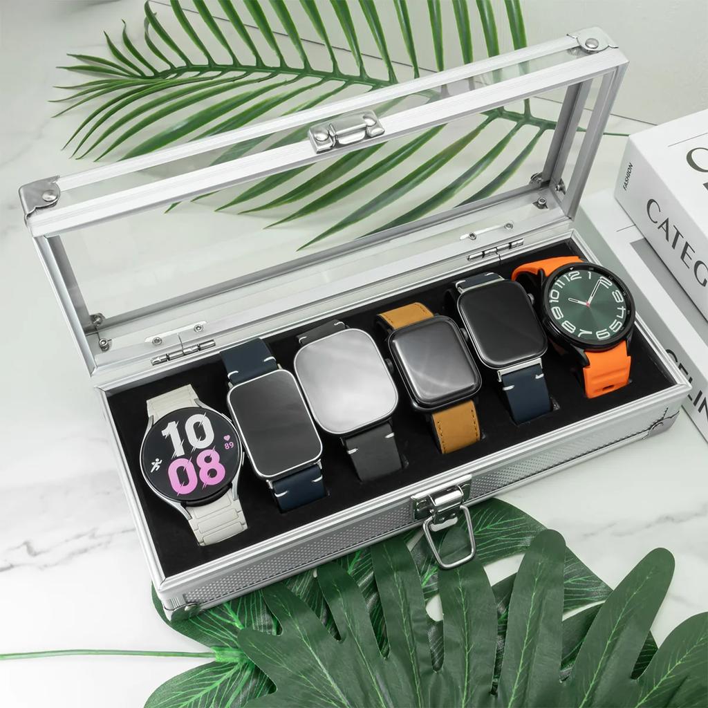 Jewelry Watches Display Storage Box Useful Aluminium Watches Box 12 Grid Slots Square Case Suede Inside Rectangle Watch Holder