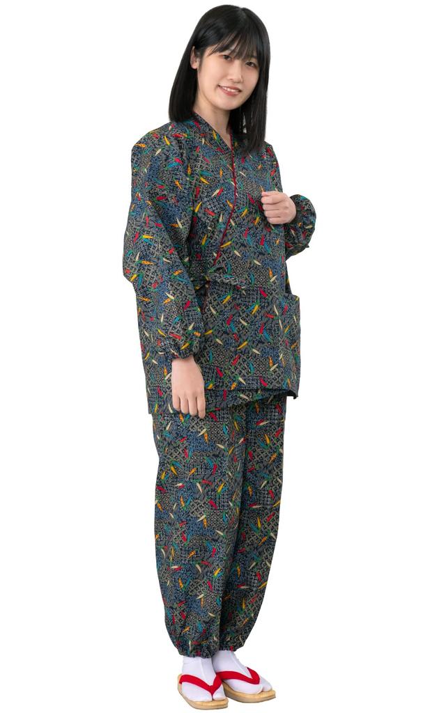Aiai Women's Samue, Soft to the Touch, 100% Cotton, Made in Japan, 13 Patterns (Chili Pepper (Navy))