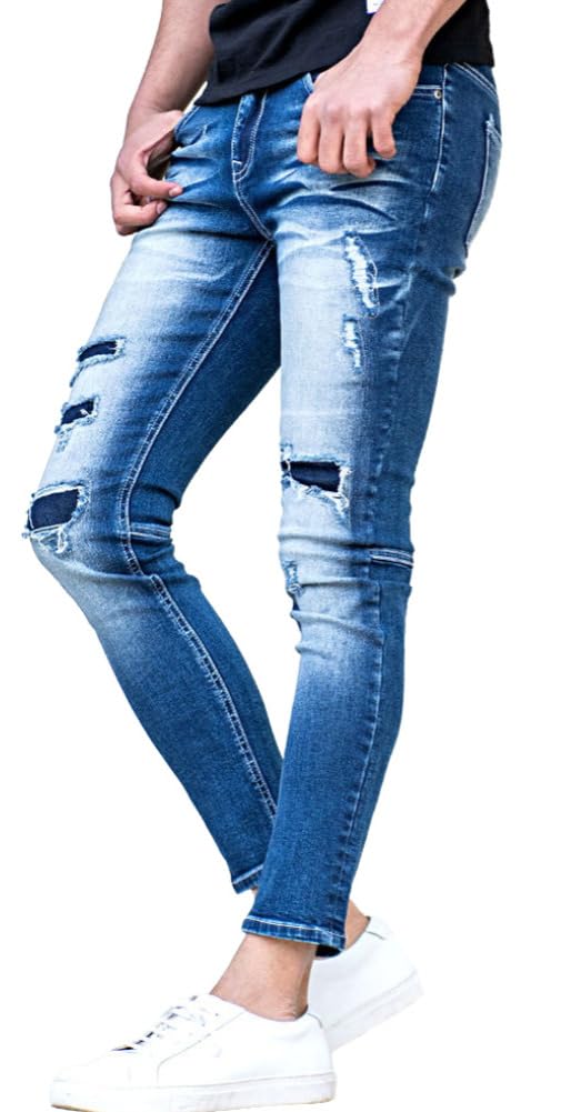 Te obcisłe dżinsy są wykonane z rozciągliwego materiału dla wygodnego dopasowania.