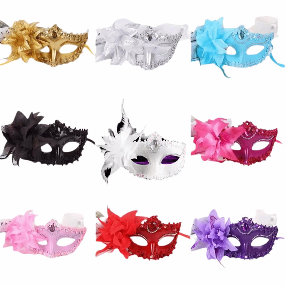 Lady Princess Diamond Decorated Venetian Mask Half Face Sexy Style Feather Mask Flower Design Masquerade Mask Dance Party