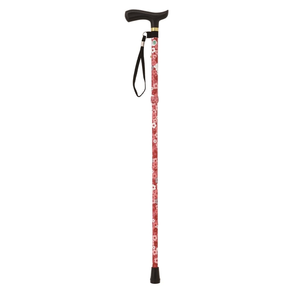 Nakabayashi Aluminum Walking Stick, Folding, Economy Type, 5 Height Adjustments, Floral Red, RQS-E012FR