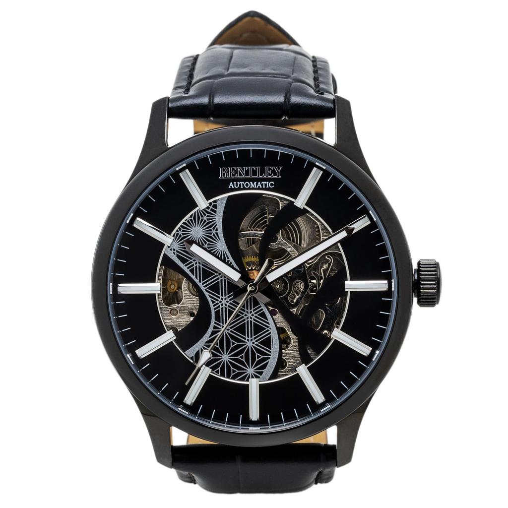 CREPHA Men's Analogue Automatic Watch with Leather Strap, Bentley Black, BT-AM320-BK