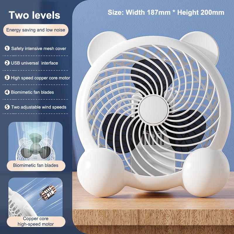 4/7inches Desktop Fan Ultra Quiet USB Charging Panda Fan for Office Home Portable Dorm Camping Outdoor