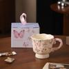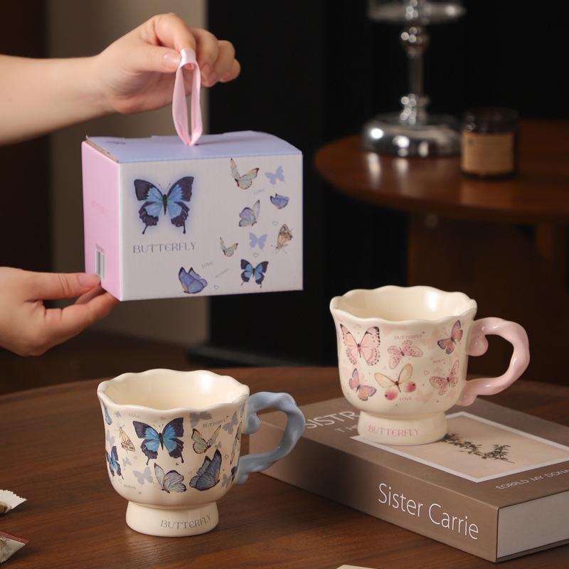 Kreatywny ceramiczny wysoki kubek w stylu ins, premium kubek do kawy, herbaty, wody z motylami, do biura, domu, na śniadanie