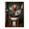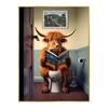 Zabawny plakat z krową szkocką, szympansem i psem Dekoracja toalety łazienki Zwierzę czytające gazetę Obraz na płótnie Sztuka ścienna Obrazy Dekoracja domu