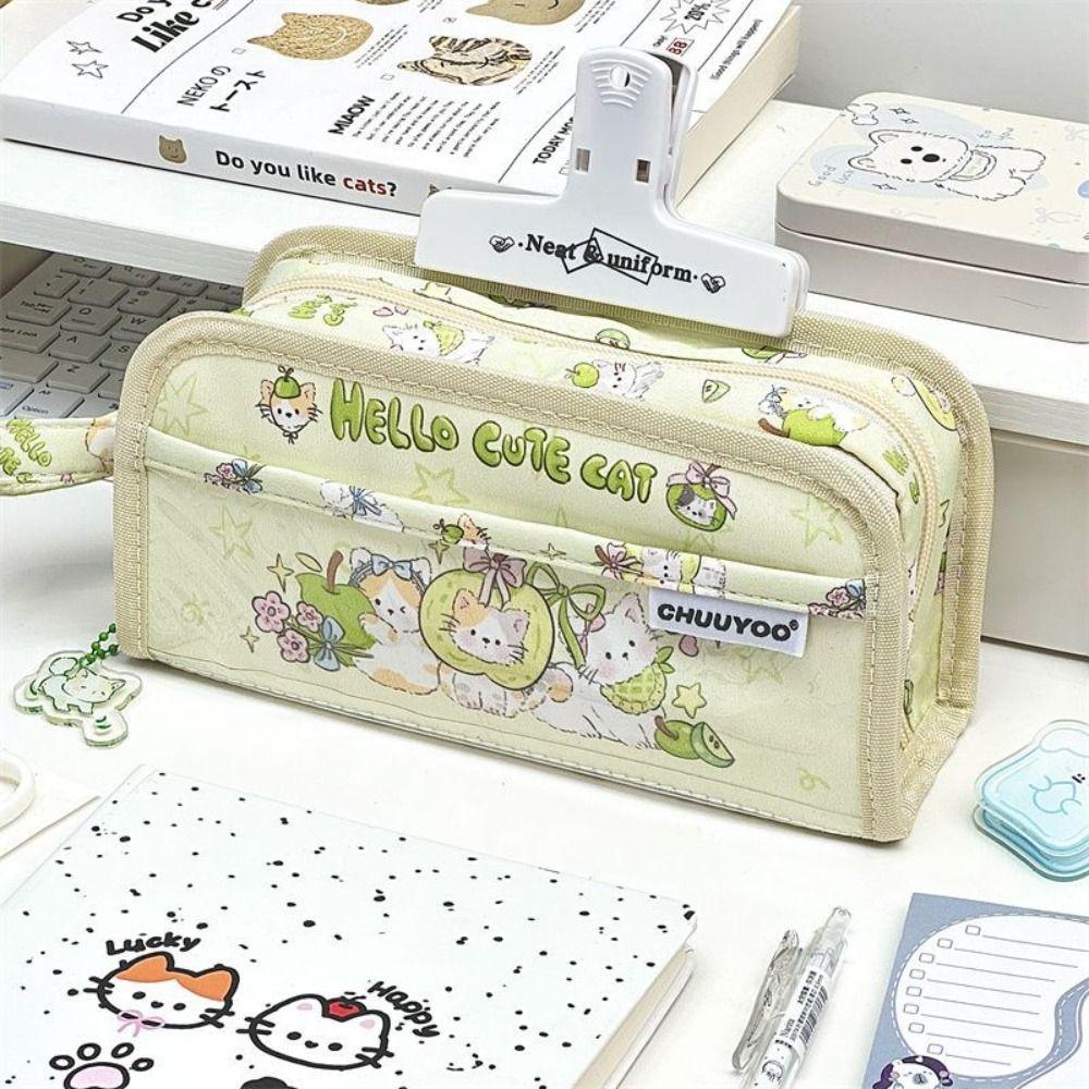Cartoon Cute Kitten Pencil Case Multilayer PVC Large Capacity Stationery Bag Dirty-proof Stationery Storage Bags Student