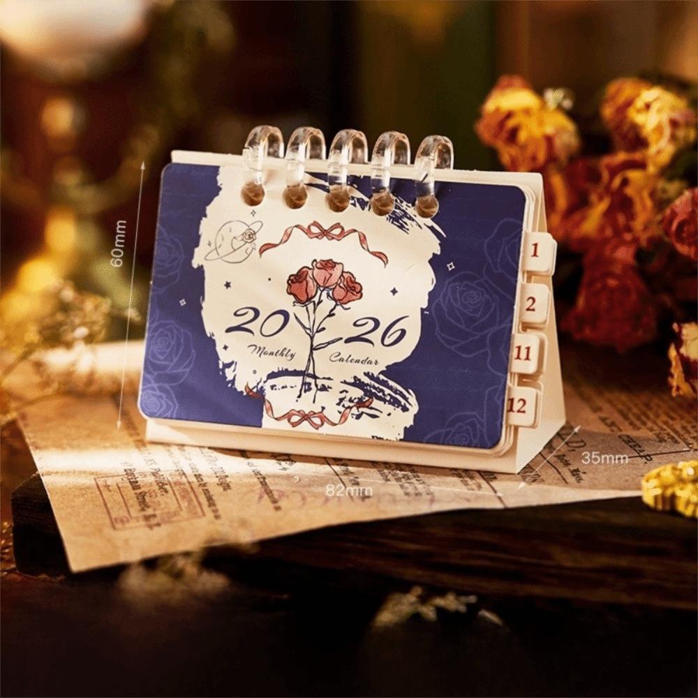 Nowy Mini 2026 Kalendarz Biurkowy Różany Przenośny Kreskówkowy Planer Harmonogramu Zaznaczanie Harmonogramu Ozdoby Kalendarza Ozdoby Biurkowe