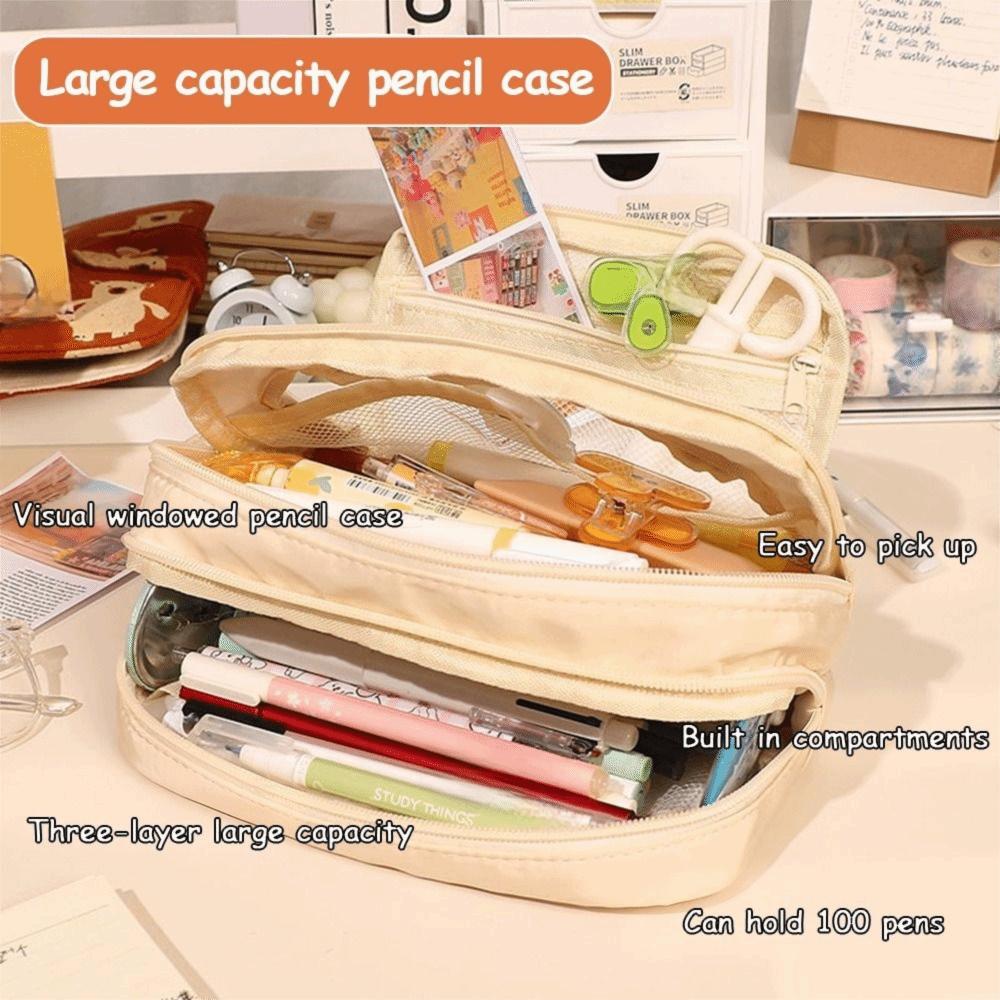 Fashion Large Capacity Pencil Bag Multi-layer Solid Color Pen Pouch Stationery Storage Bag Back To School