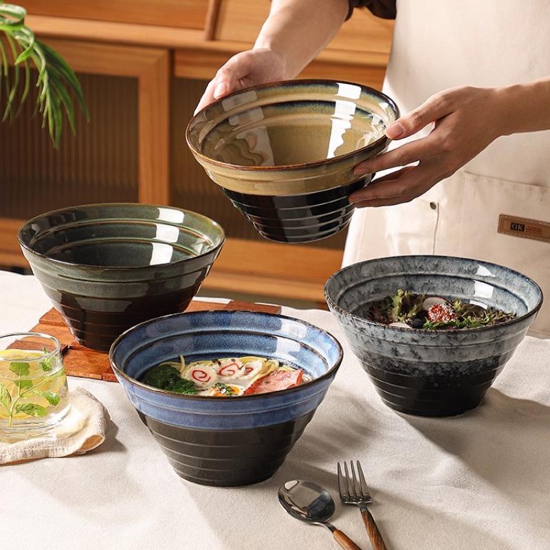 Ceramic retro large household soup bowl, Japanese restaurant commercial bamboo hat bowl, heat-resistant ramen