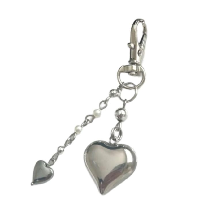 Trendy Silver Heart Bag Accessory Stylish Alloy Heart Bag Pendant Personalized Heart Keychain Accessory for Purse