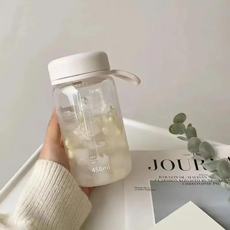 450ml Transparent Plastic Cup Transparent Lifting Rope Milk Water Bottles Fall Prevention Leakproof Drinking Water Bottle