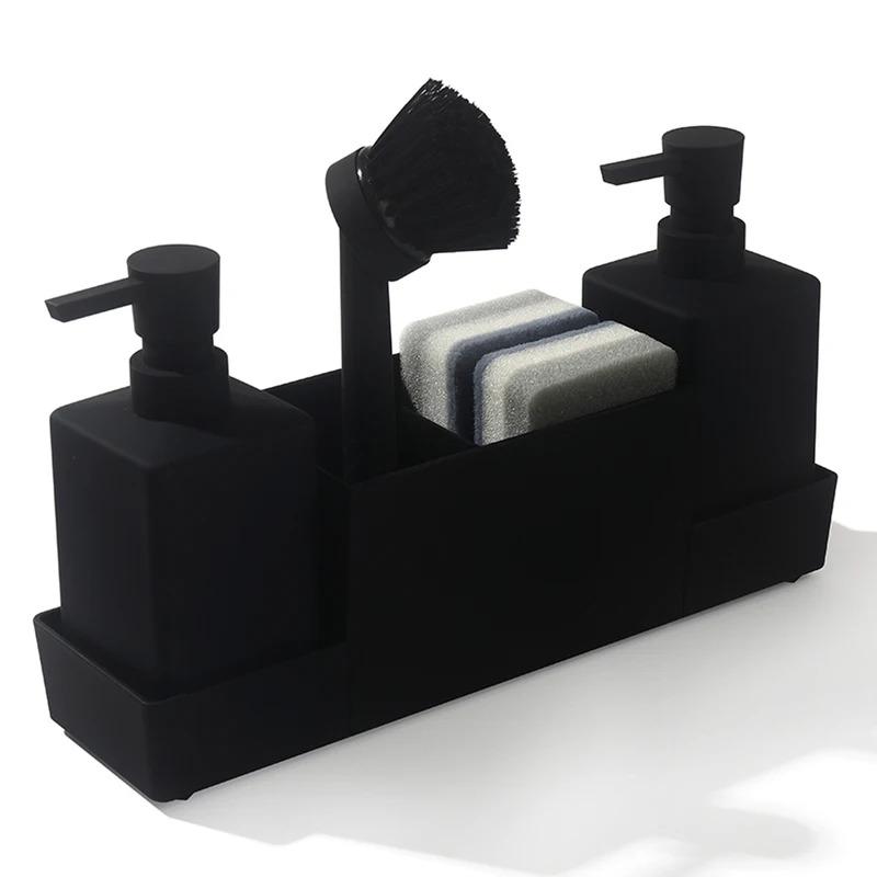 Dozownik mydła do kuchni z uchwytem na gąbkę (bez gąbki), nadaje się do zlewu, mydła do rąk i płynu do mycia naczyń