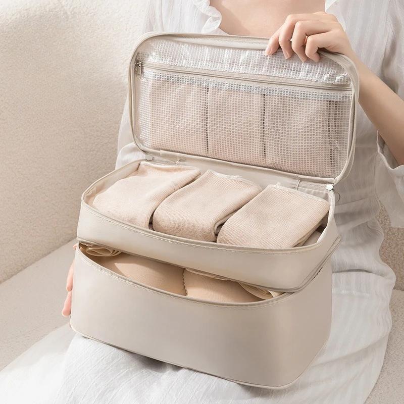 Dwupoziomowy organizer podróżny 3 w 1: Torba do przechowywania biustonoszy/bielizny/skarpet o dużej pojemności, przenośna i kompaktowa
